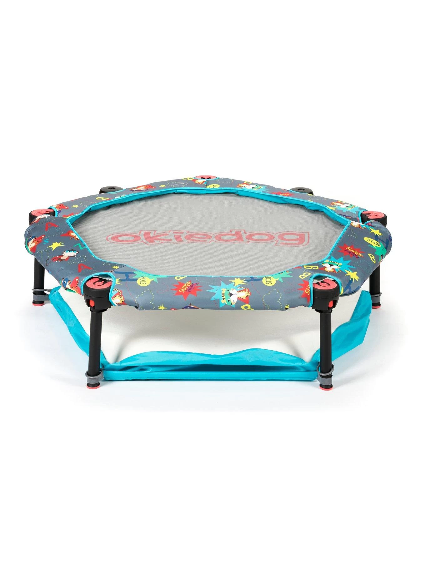 This robustly made, yet lightweight (6 kg) superhero three in one folding multifunctional trampoline is a great activity centre for kids at the same time as helping you child with physical activity and also promoting balance, co-ordination as well as spatial awareness. It is suitable for indoor and outdoor use making it great for year-round fun. This is a three in one trampoline that grows with your child, it starts out as a ball pit (it even includes 100 multi-coloured balls) and it easily converts into a 90 cm (35′) diameter trampoline with a removable safety bar, which, once removed, is the final step to free jumping fun. It features five legs for stability that have non-slip, non-marking TPR feet that prevents the trampoline from sliding and also protect the floor from marking when it is in use. It also comes fully assembled and requires no tools in its assembly and as it also folds in half, it can be easy stored and transported. Its maximum user weight is 25 kg. Suits ages 10 months to 5 years of age.