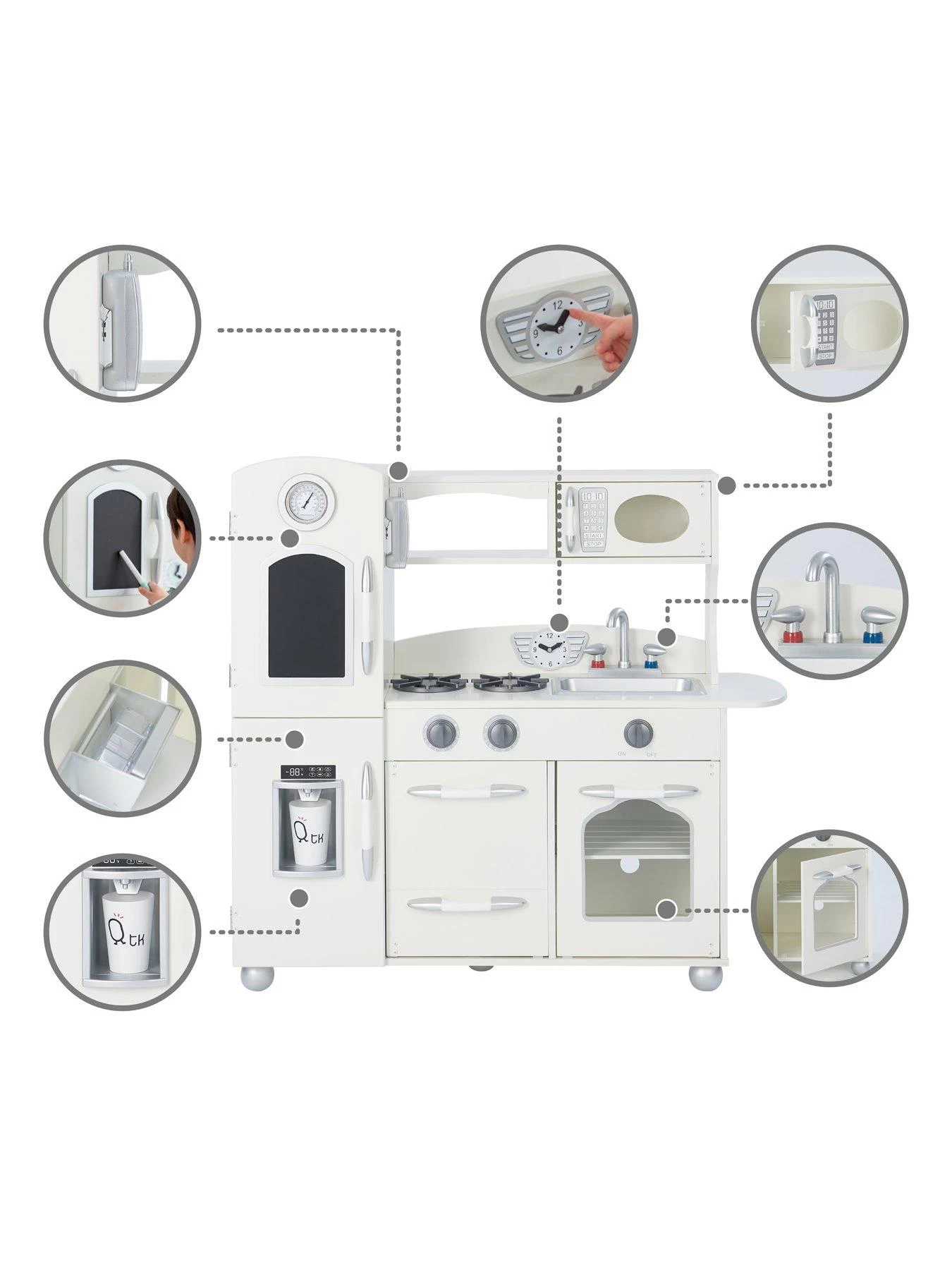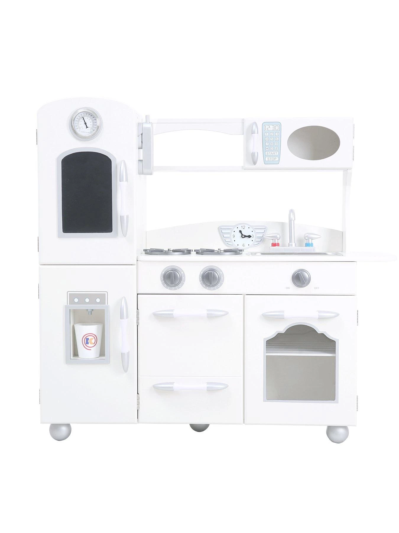 Comes with 3 high-quality accessories, including: a branded Teamson Kids cup & 2 plastic ice-cubes to help encourage exciting role play. Our ‘Westchester’ play kitchen has been constructed with durable MDF to withstand the rough and tumble of everyday play. This wooden kitchen is easy to clean – surfaces can be wiped with a damp cloth.