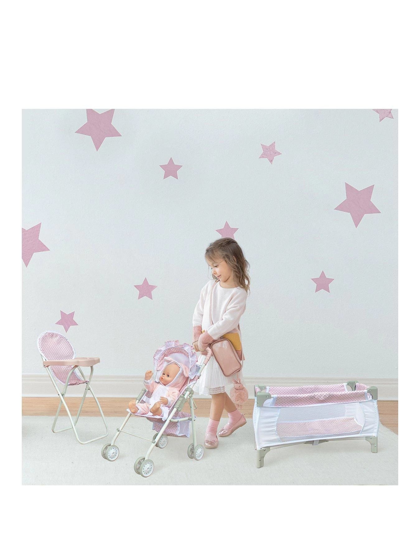 Teamson Kids Olivia’s Little World – 3pcs Doll Nursery Set – Highchair, Pushchair, Cot – Pink and Grey