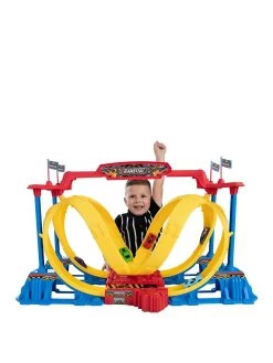 Rev your engines for more racing, crashing action with the Teamsterz Turbo Twister Car Track Set! With 2 x Teamsterz cars included, how many you can race around the track at one time? Race multiple cars at a time using the dual motorized car launcher and then watch as they whizz around the track at top speeds, through the double loops and fast curves! Watch out for the three impact zones where the tracks cross over, guaranteed to cause dramatic crashes. This racing car play set is the perfect gift for any enthusiastic little racer, offering hours of imaginative fun! The Teamsterz toy cars included are approximately 3-inch scale and feature high-quality die-cast details and independent free-moving wheels. Requires 4 x C/LR14 batteries. Suitable for ages 3+.