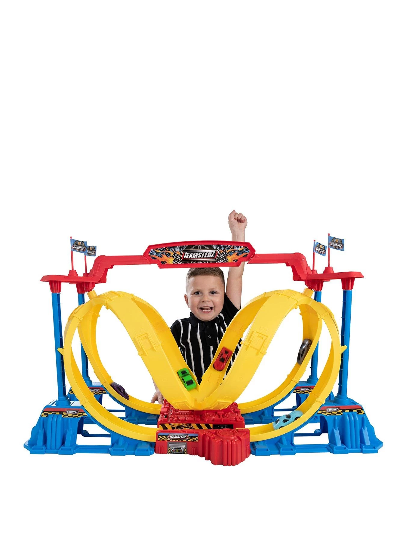 - This track set includes 2 x Teamsterz die-cast cars with free-moving wheels and is easy to construct.