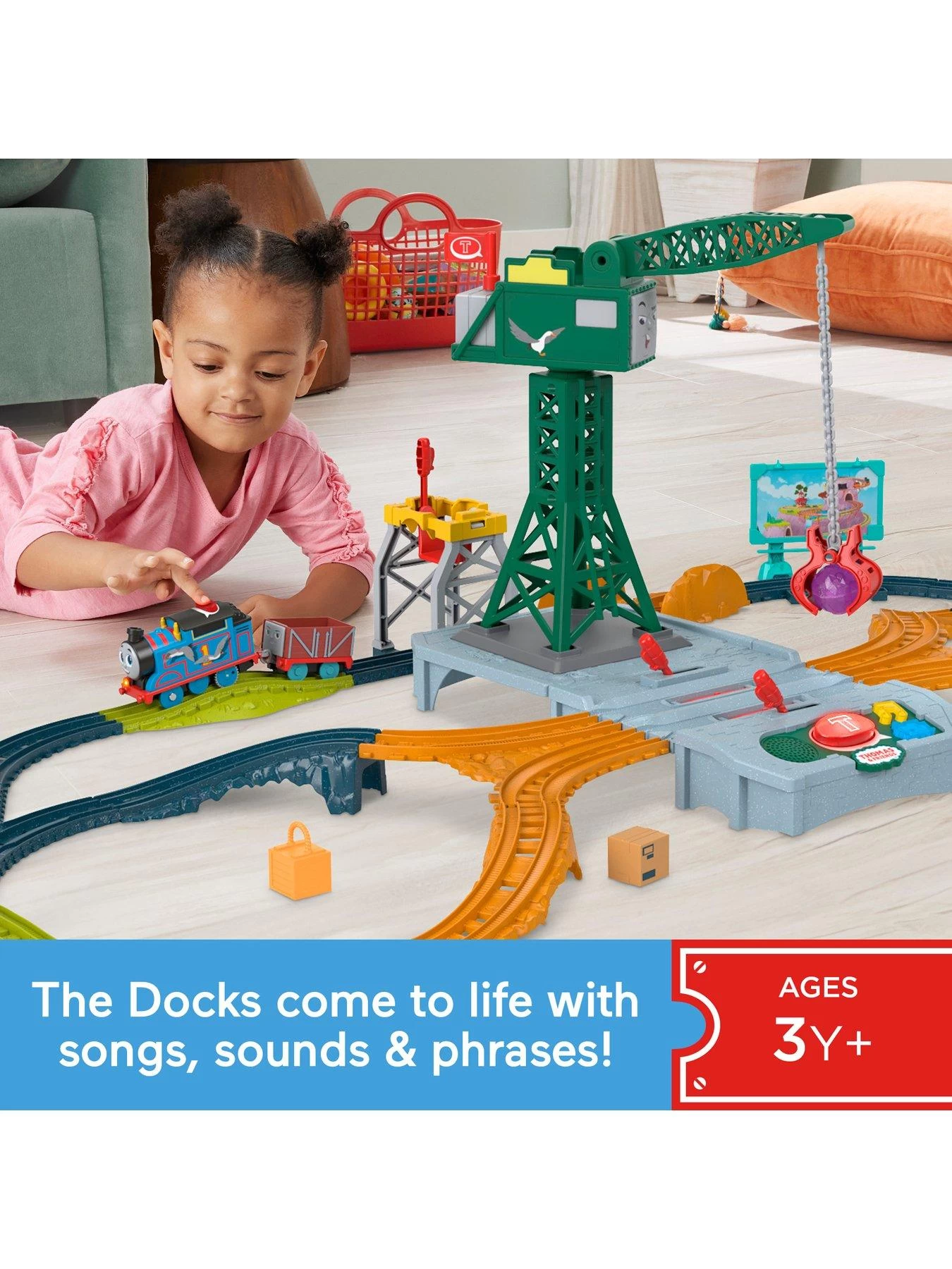 - Brendam Docks comes to life with this Thomas & Friends motorized train and track set featuring songs, railway sounds, and real character phrases