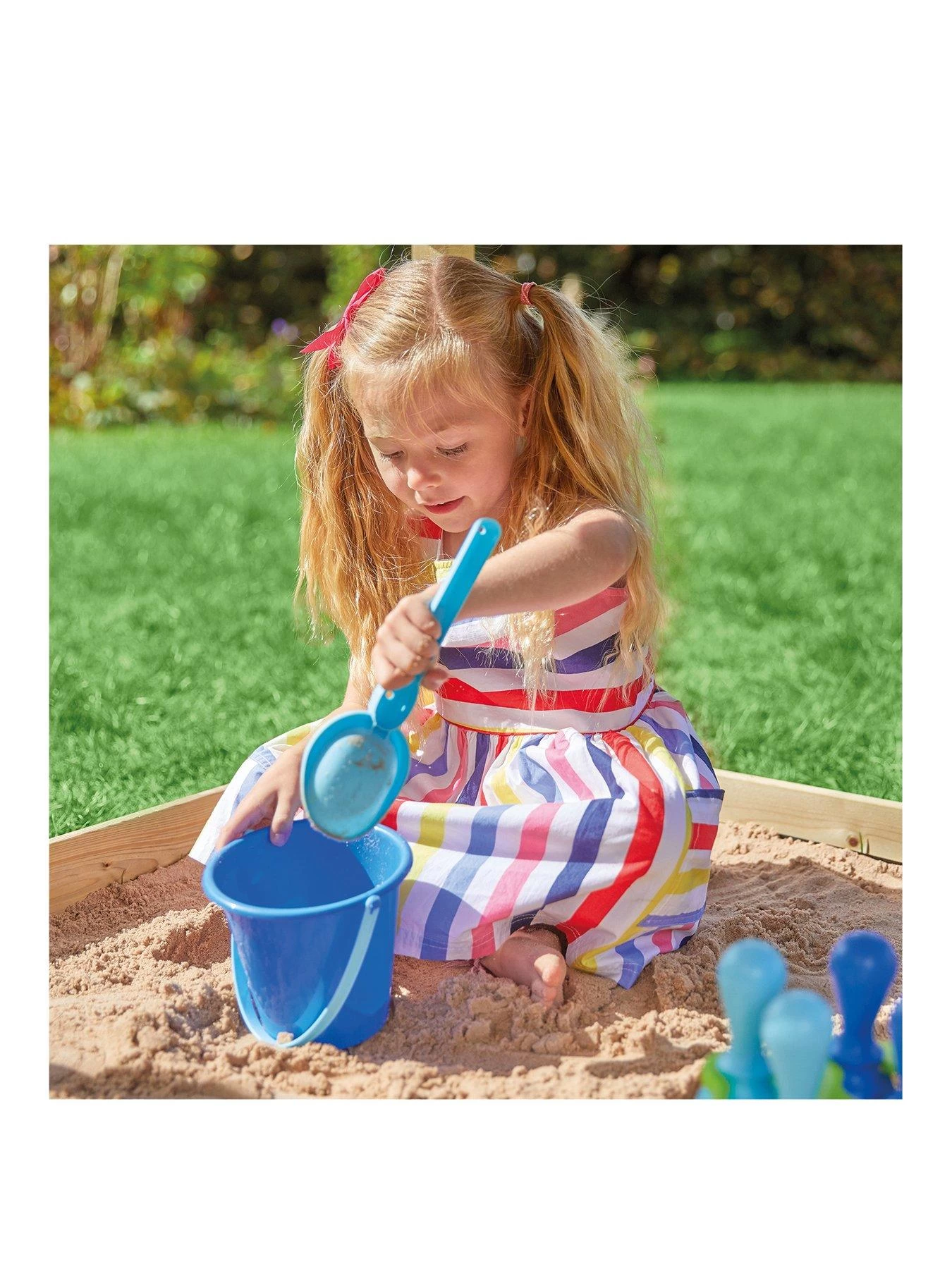 - Shaded sandpit is ideal for sunny gardens and extra play value