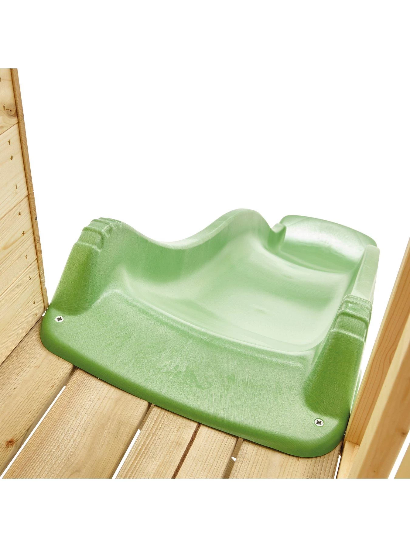 The TP Hill Top Wooden Tower Playhouse with Slide is a great way to encourage imaginative outdoor play.