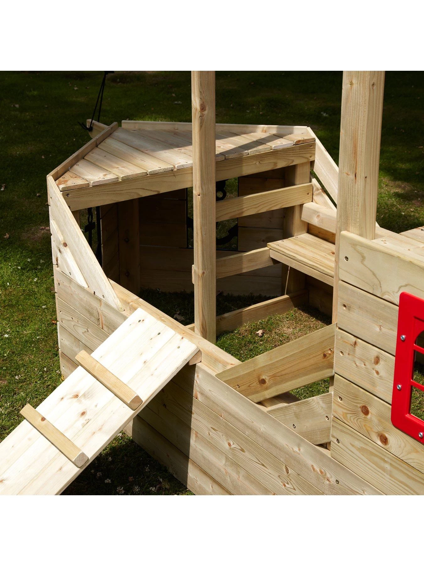 It features a captain’s cabin, gangplank, ship’s wheel and two sails – one red, one pirate themed. The secret ‘lookout’ has appropriate anchor design windows, perfect for sailing the ocean wave and is really spacious so room for lots of children to play.