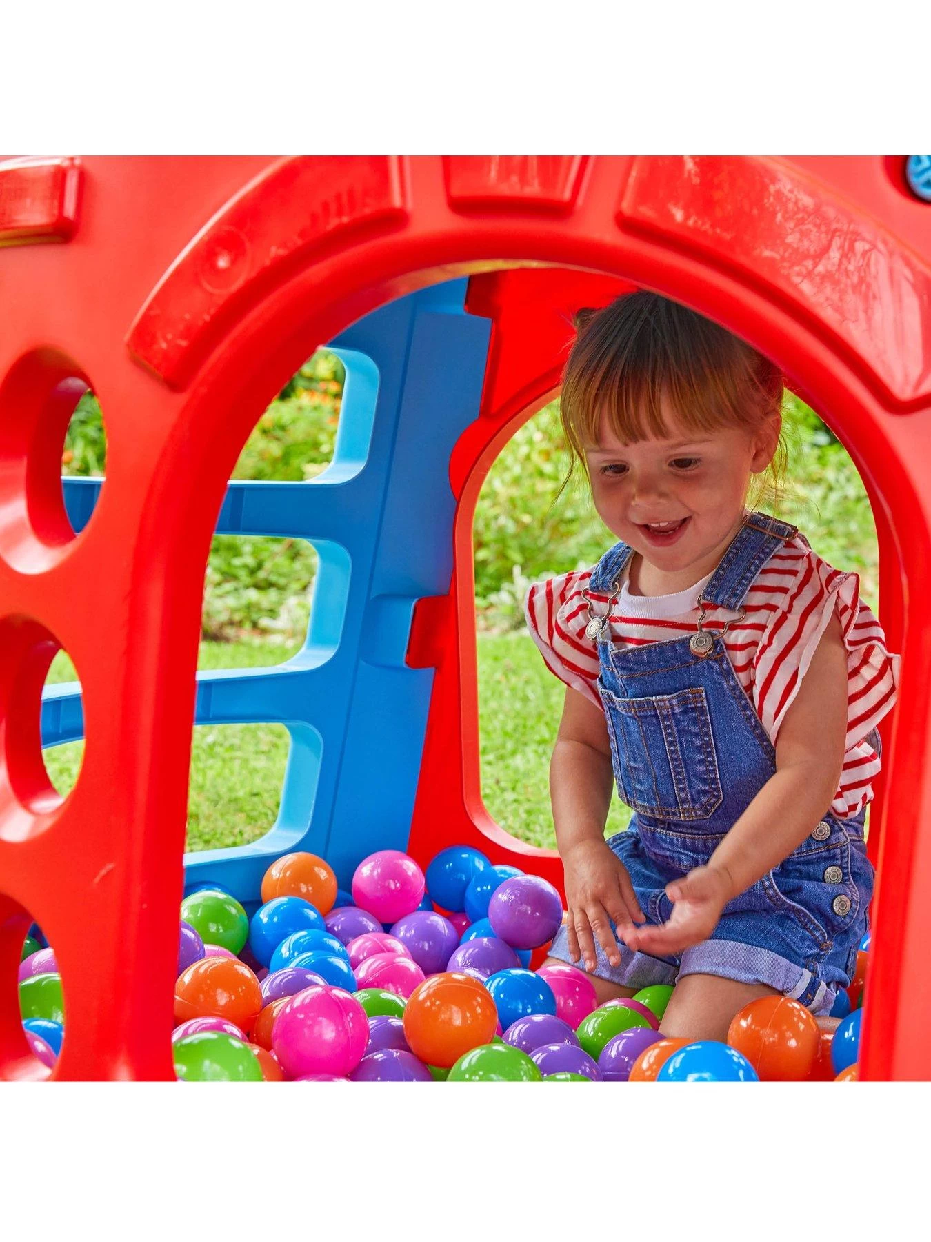 Your toddler will absolutely adore this fun and vibrant multi-use play gym! Perfect for hanging, climbing and sliding, this easily assembled play gym offers children hours of fun!