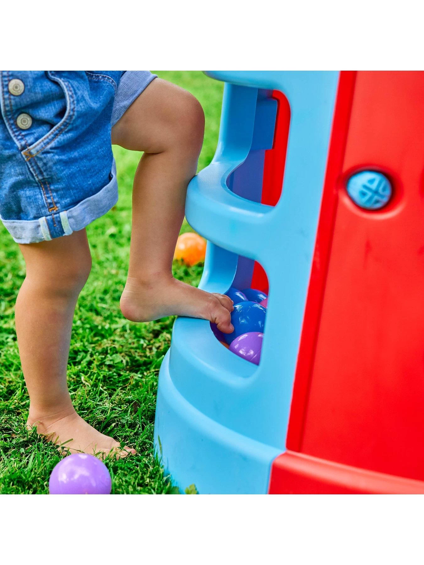 Including a safety railing, sturdy slide and fun den, there’s room for 2 on this play gym, where the fun never ends!