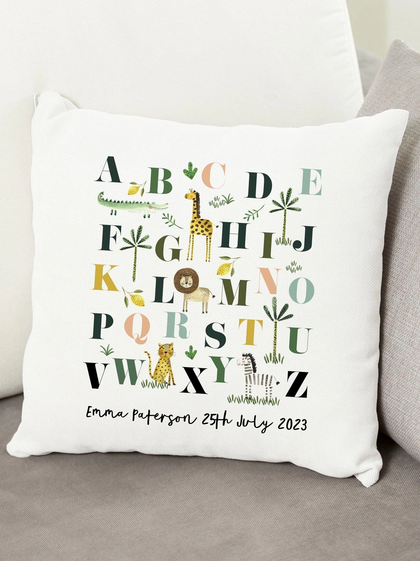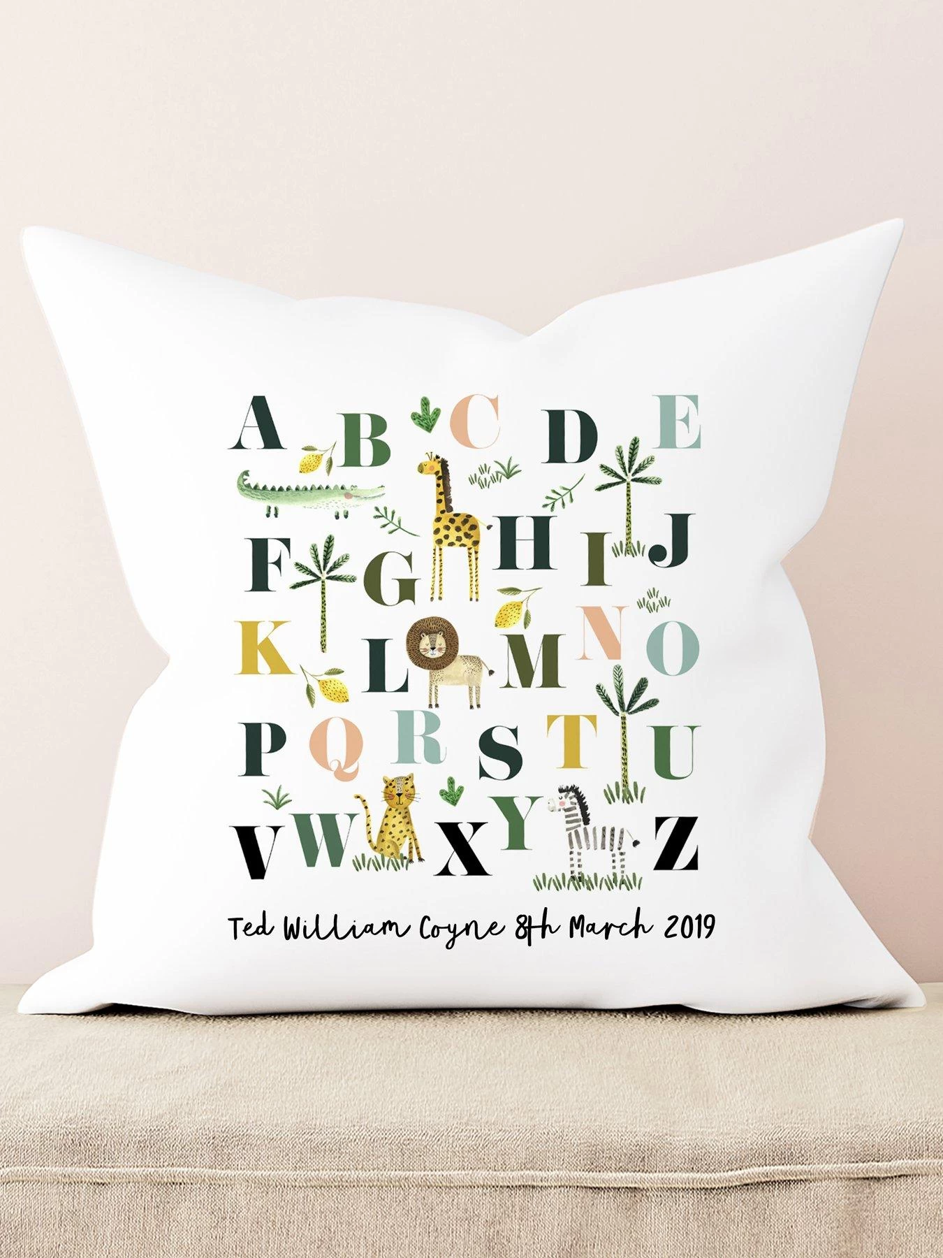 - Personalised Safari Animals Milestone Cushion, the perfect gift for newborns and 1st birthdays!