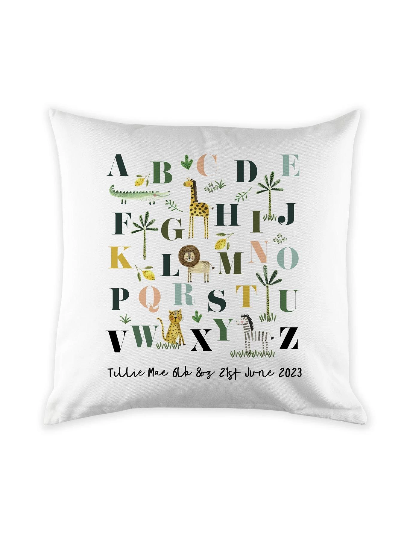 - Featuring a beautiful safari animal A-Z design on the cushion cover. Cover only.