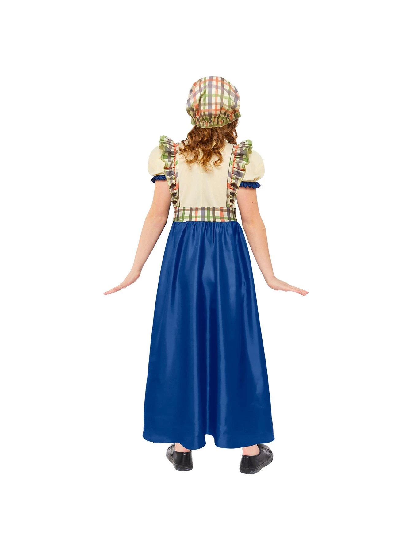The outfit comprises of a printed dress with attached apron and coordinating printed hat – perfect for any fancy dress occasion, including parties, school productions and Halloween!