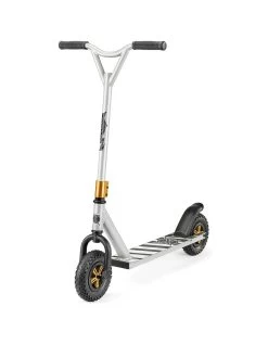 You can conquer a whole world of new terrain with the Xootz Decoy Dirt Scooter, thanks to pneumatic off-road chunky wheels. The super-wide heat-treated aluminium deck with steel Y-frame handlebar keeps it light enough for jumps and tricks while withstanding hard off-road impacts. A threaded headset and quad bolt clamp provide direct and precise steering for total control while ensuring that this sturdy scooter always offers a fun and reliable ride. Not only is it ideal for all terrains, but also for all ages, as it supports kids age 6 to adults up to 100kg (15.7 stone)!