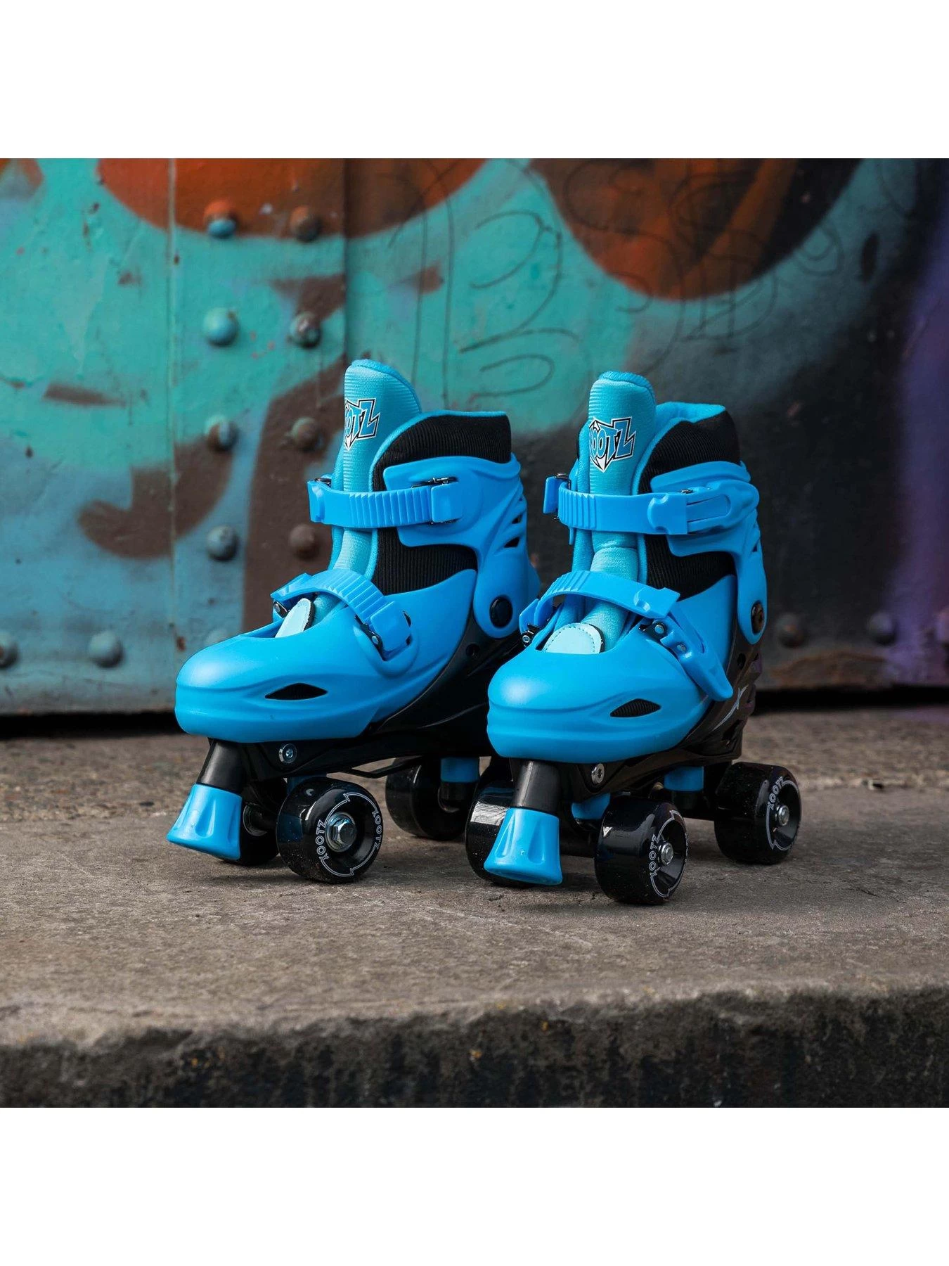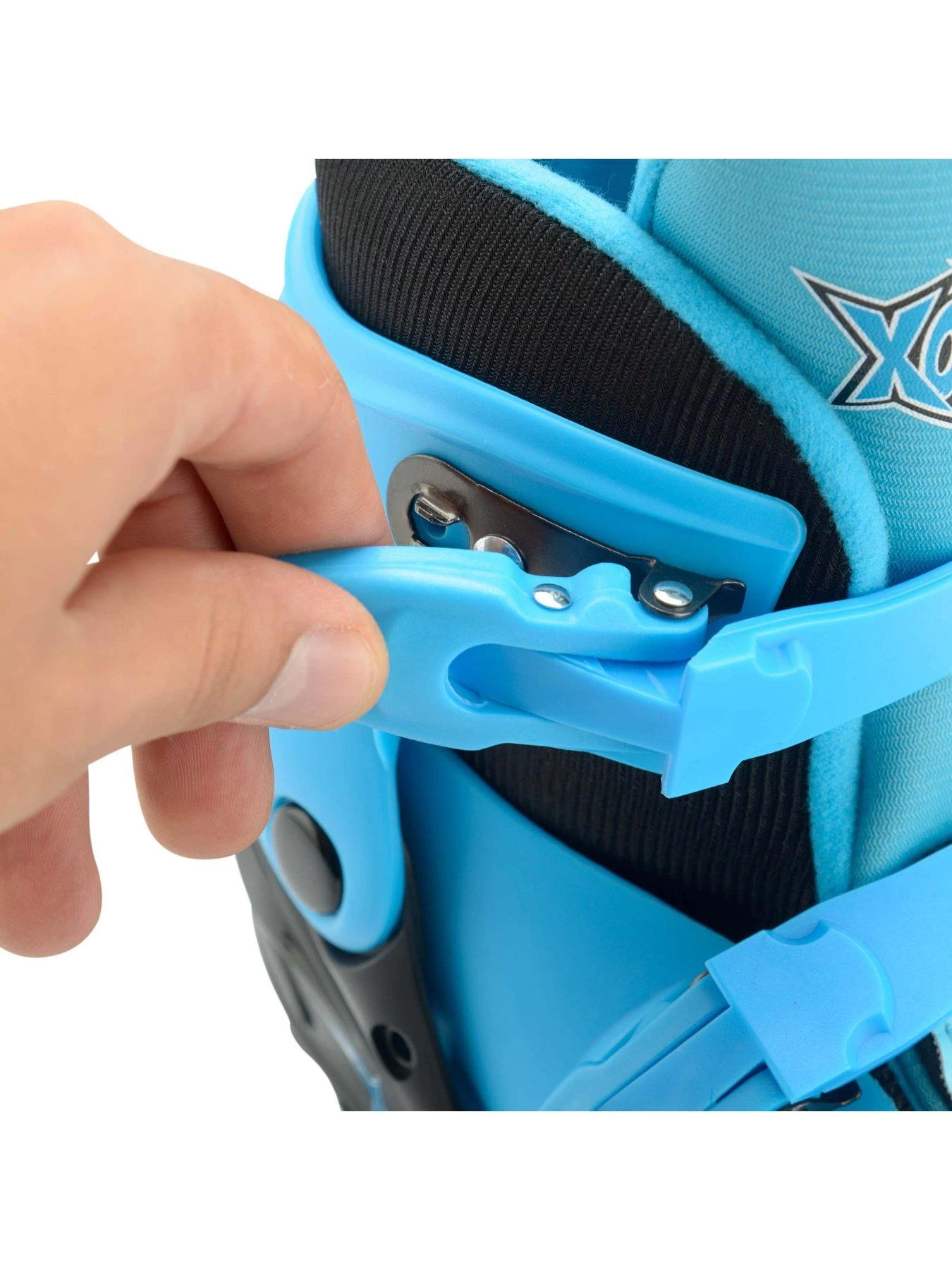 Featuring an adjustable touch and close fastener, they are perfect for growing feet. Providing plenty of ankle support thanks to the super comfortable padded boot, the Xootz Quad Skates are great for new riders who are still finding their [roller] feet. Finished in a super cool blue and black design, little ones will love getting to grips with their brand new skates.