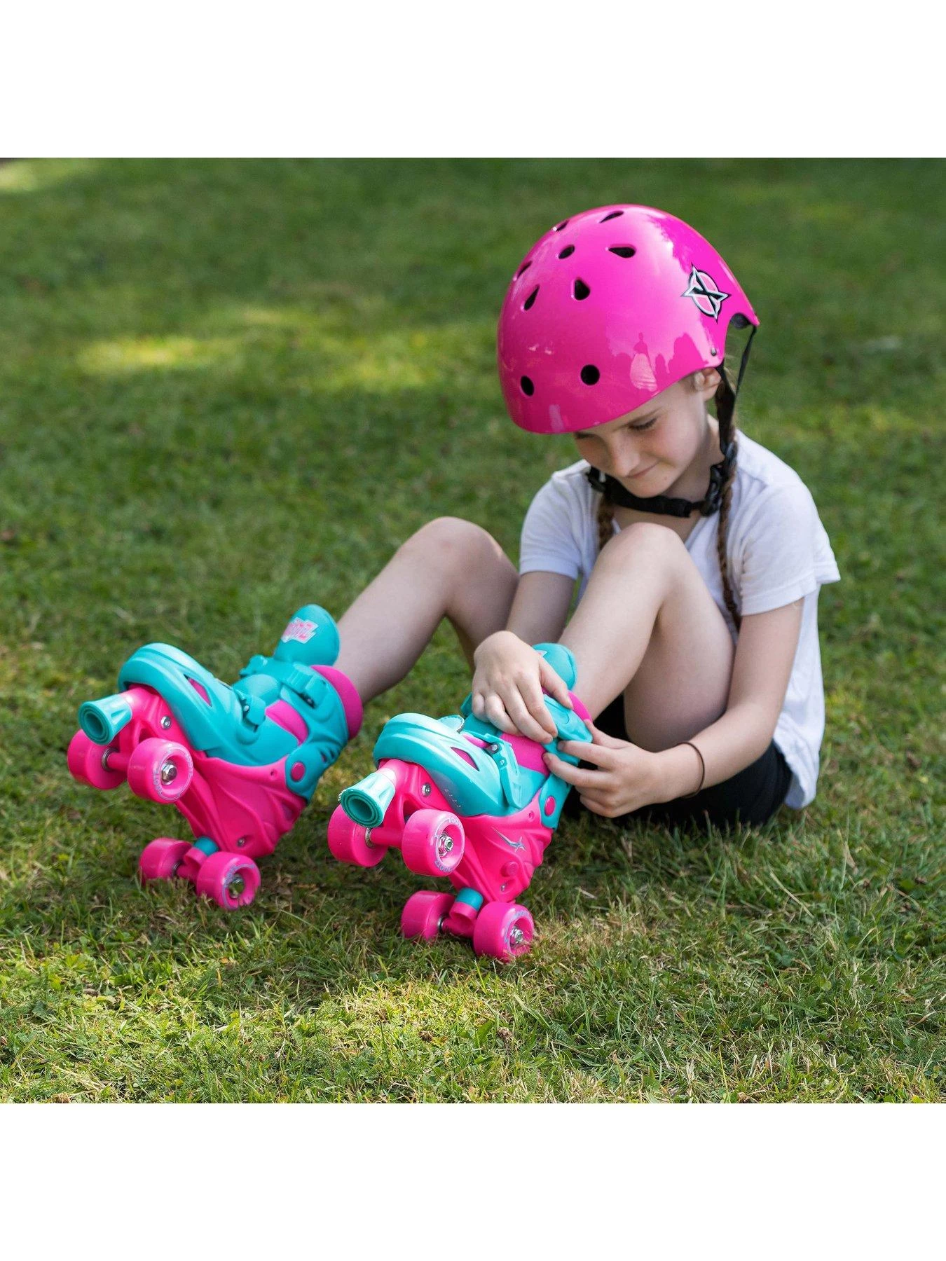 Featuring an adjustable touch and close fastener, they are perfect for growing feet. Providing plenty of ankle support thanks to the super comfortable padded boot, the Xootz Quad Skates are great for new riders who are still finding their [roller] feet. Finished in a super cute and colourful design, little ones will love getting to grips with their brand new skates.