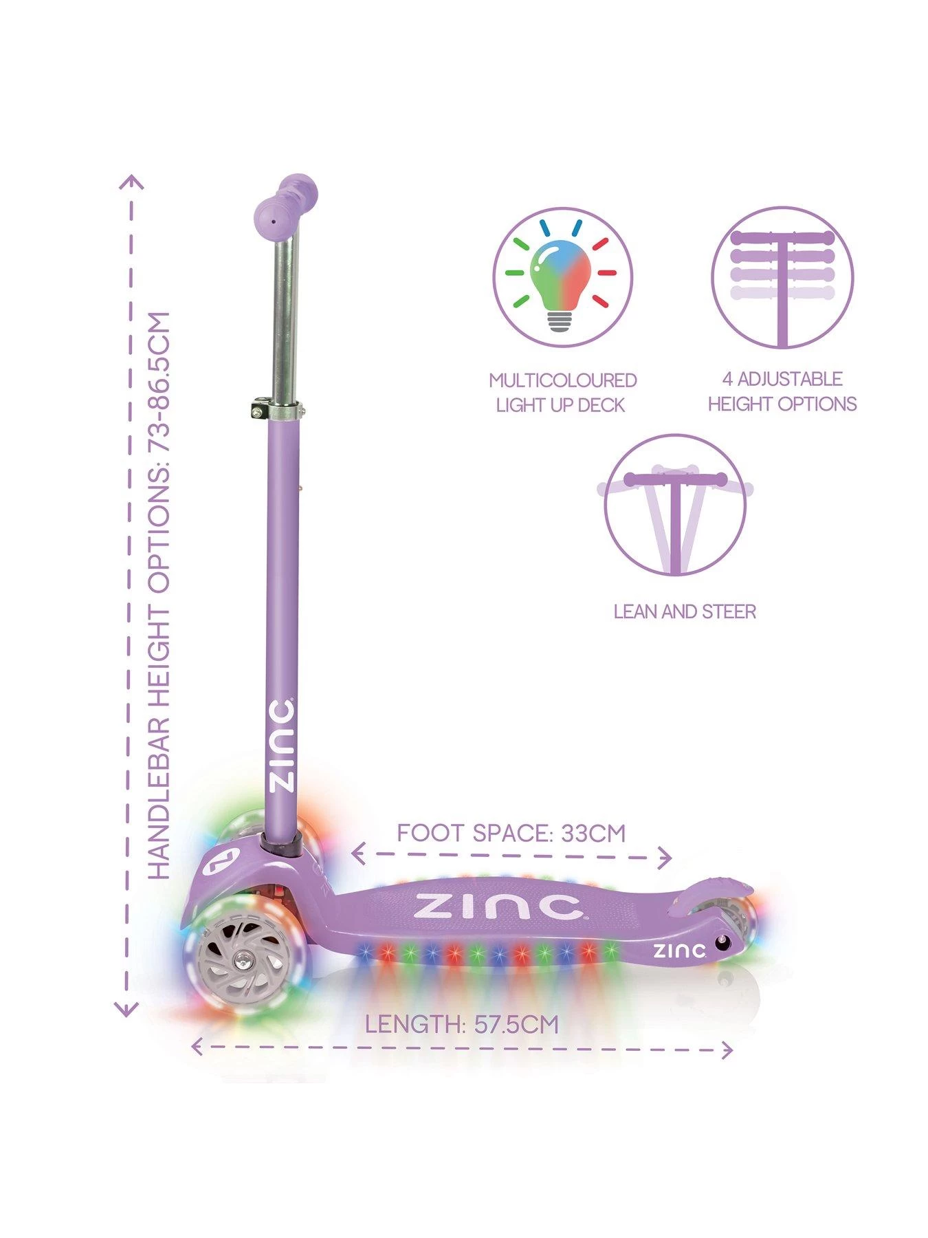 Zinc three wheeled non folding light up superstar scooter – Purple