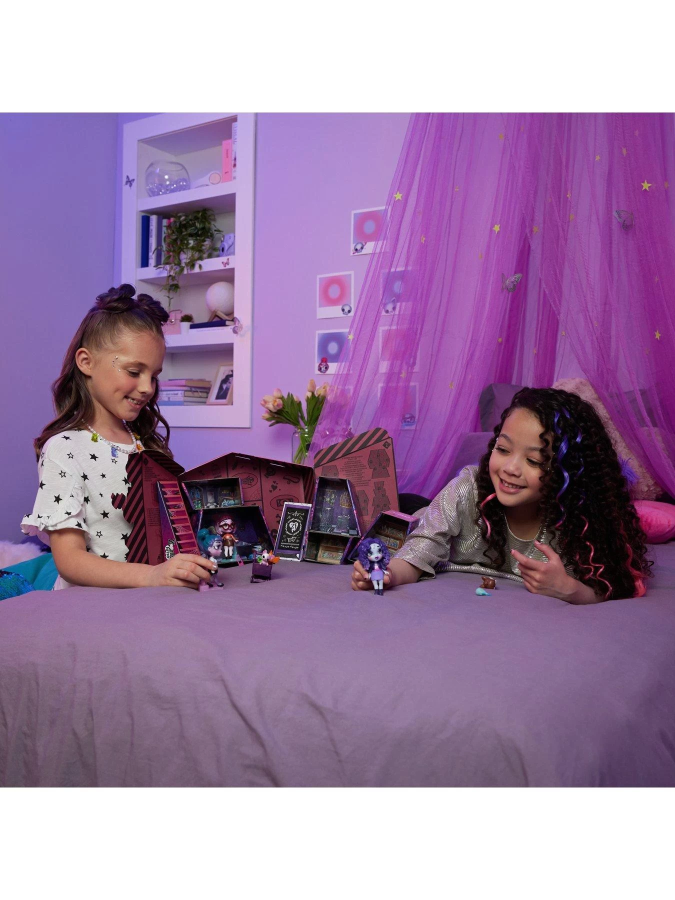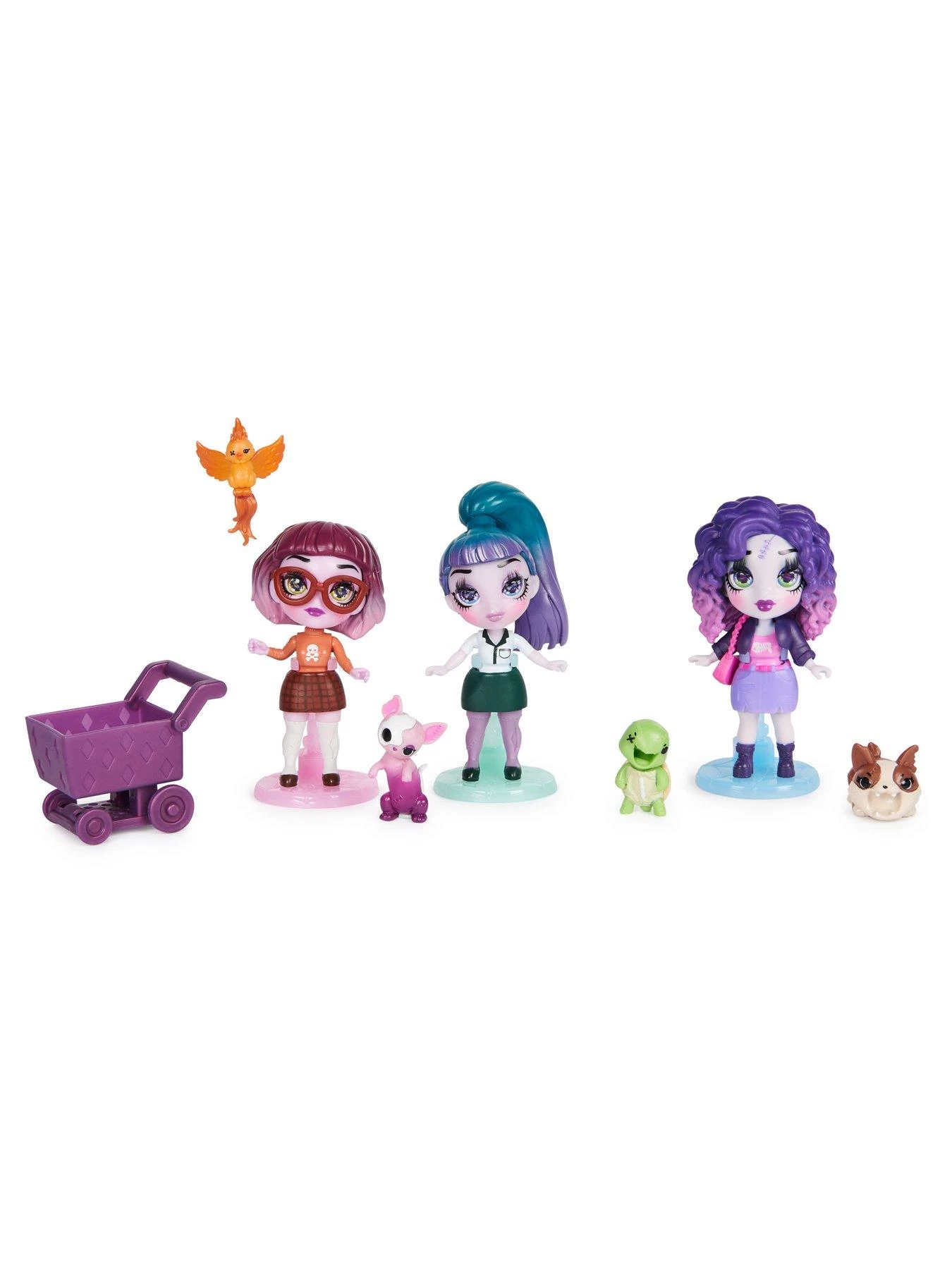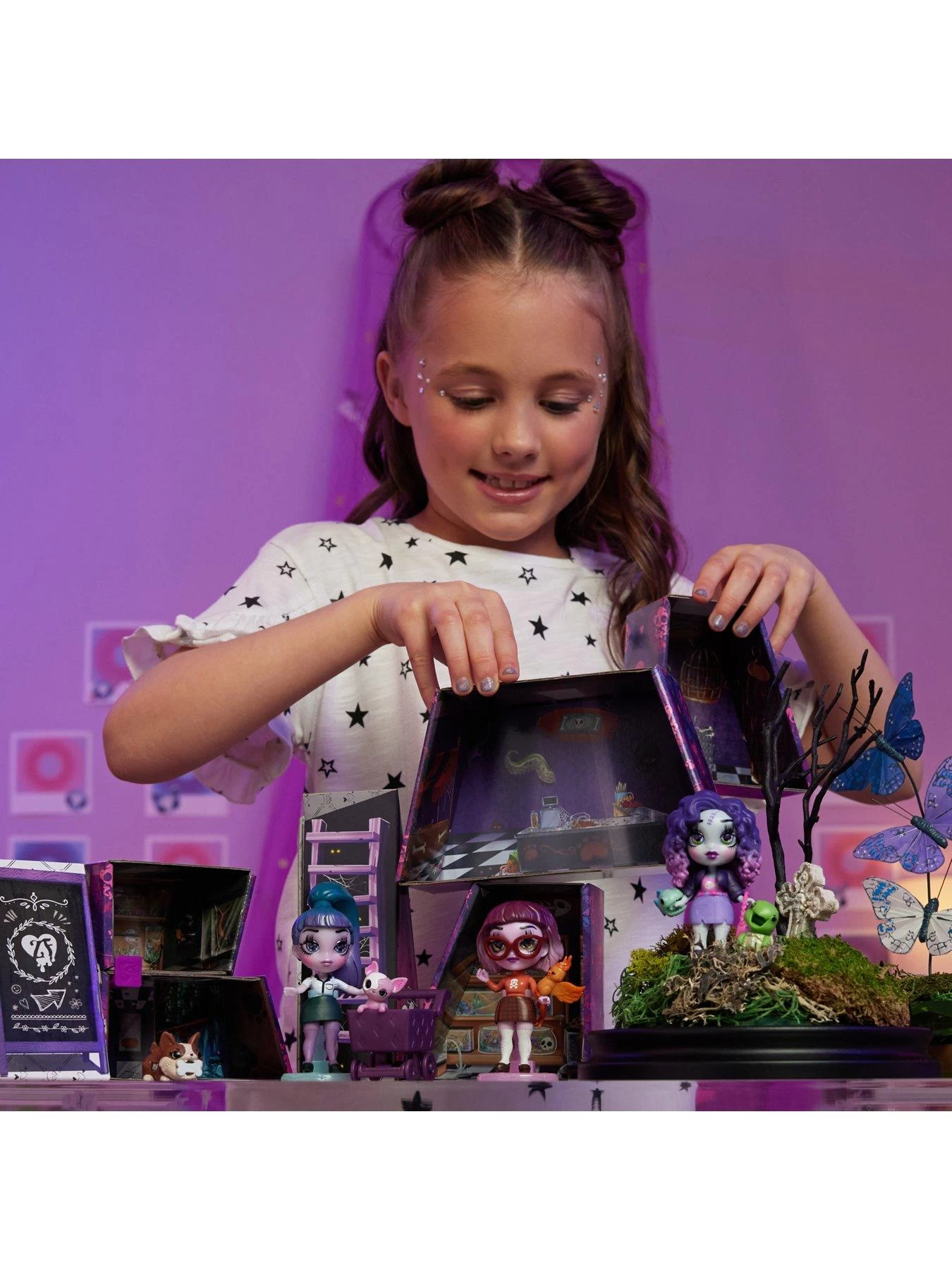 Step out of the Zombaes Forever glamyard and into the Wild Vibes Abandoned Pet Shop. This fun zombie dolls playset features customisable and reusable packaging for endless ways to play. Unbox the set to reveal three exclusive 8.9-cm Zombaes Forever small dolls, five adorable pets, three doll accessories, three spinal-cord doll stands and a holographic collector card. Each of the five rooms has a themed backdrop and can be stacked and arranged in multiple ways for a new experience every time you play. The shop includes six clips that hold the rooms in place. Perch the bird on a doll’s shoulder, place the kitty inside the shopping trolley, check out the reptile room, find the cute turtle, beware of the ankle-biting fish, slide the handbag onto one of the dolls and more. Create new looks for your characters by mixing and matching their hair and legs with each other or with any of the other Zombaes Forever toys – you can even swap the pets.